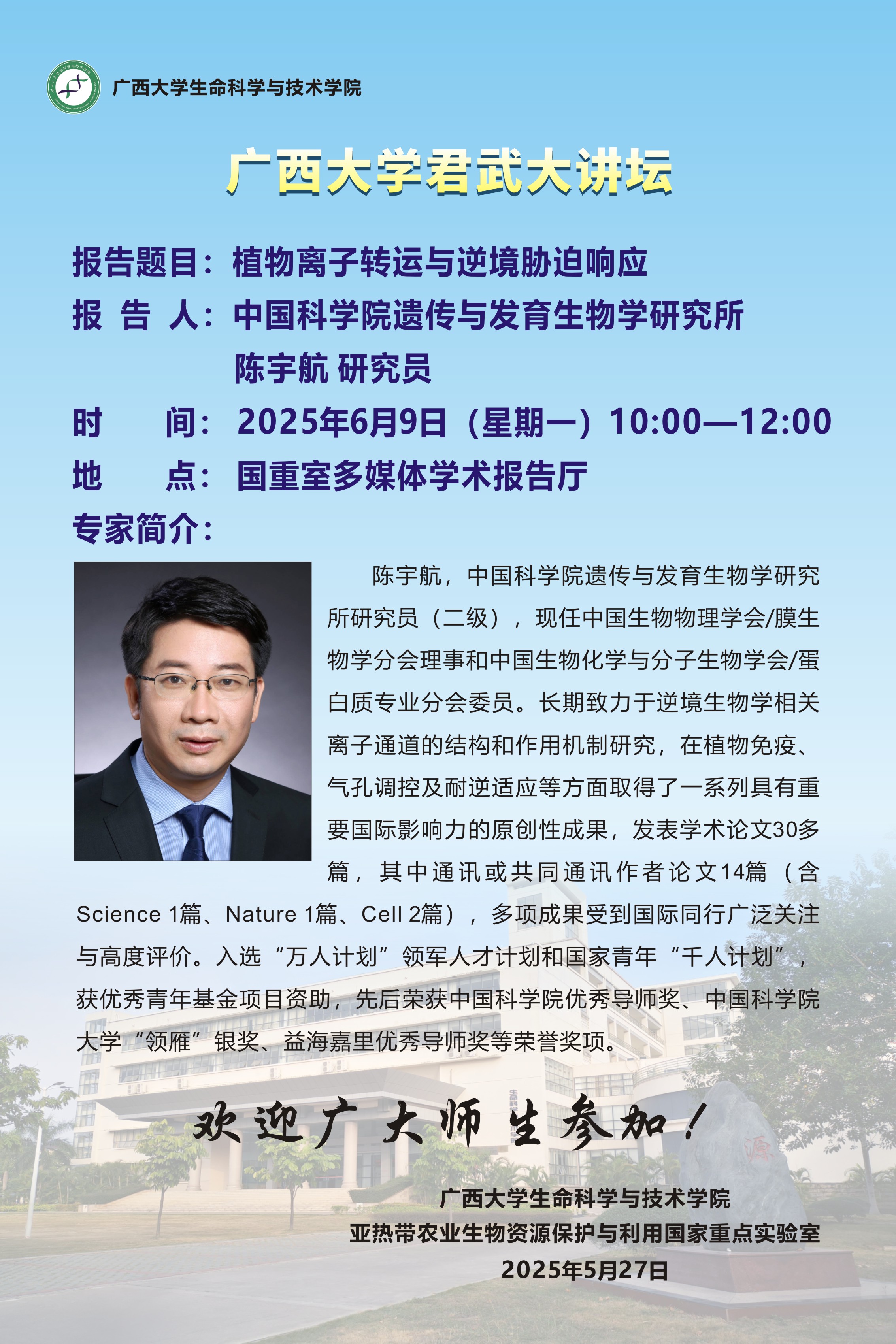 君武大讲坛:植物离子转运与逆境胁迫响应