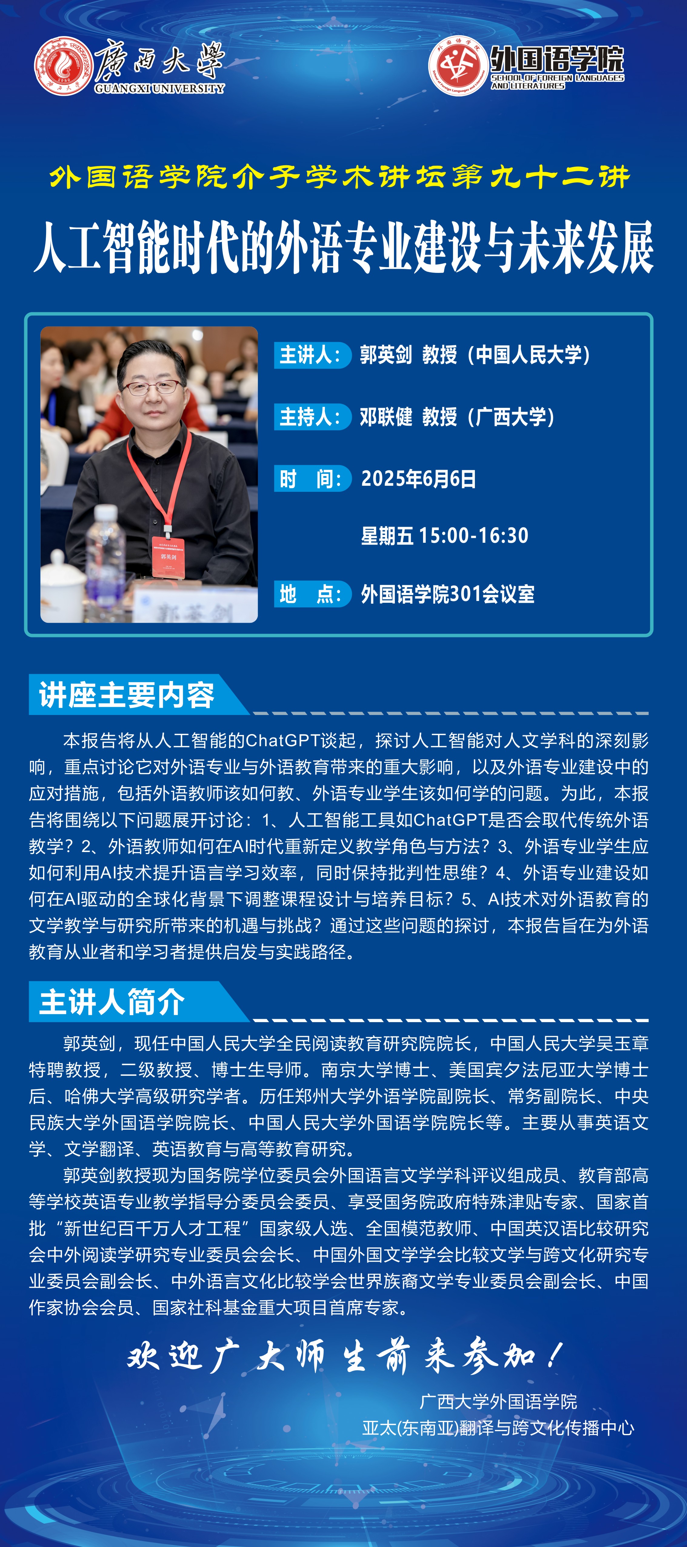 外国语学院学术报告:人工智能时代的外语专业建设与未来发展