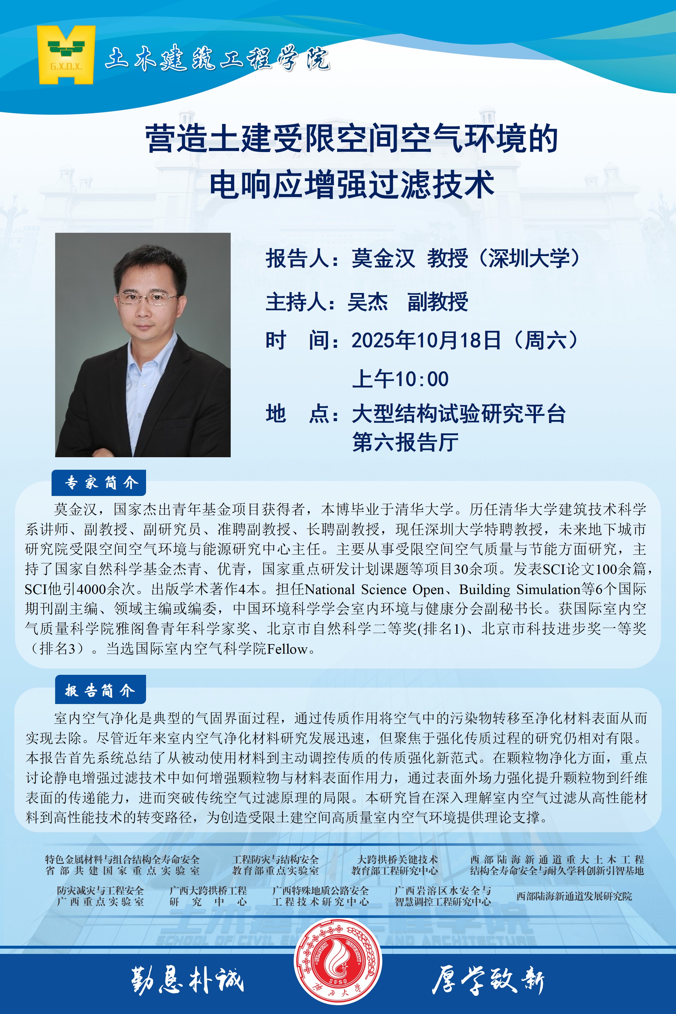 土木建筑工程学院学术报告:营造土建受限空间空气环境的电响应增强过滤技术
