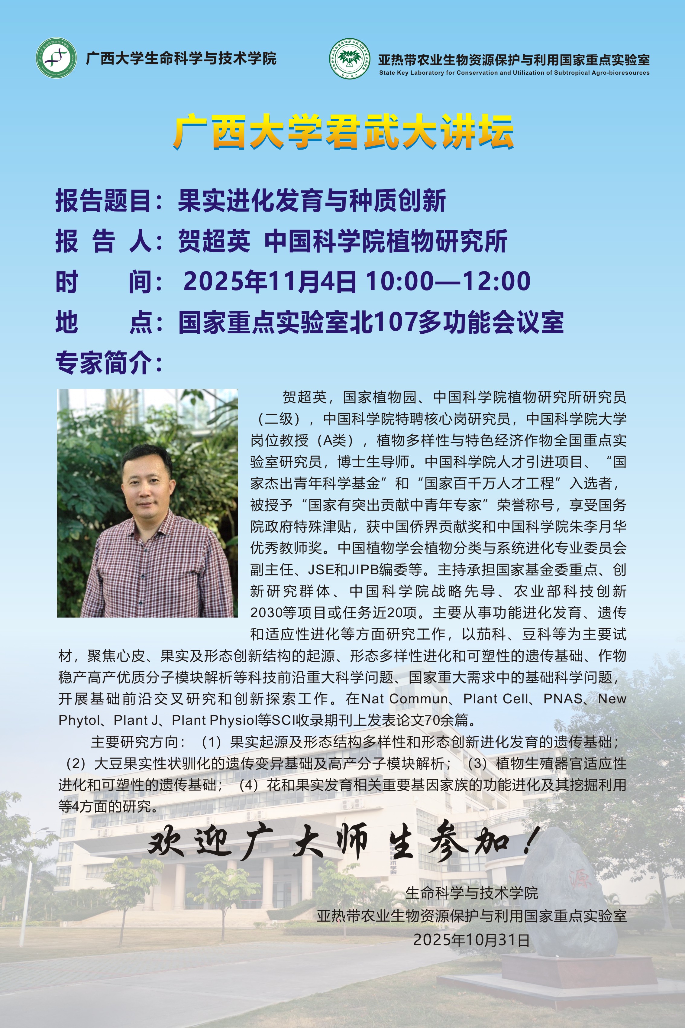 君武大讲坛:果实进化发育与种质创新