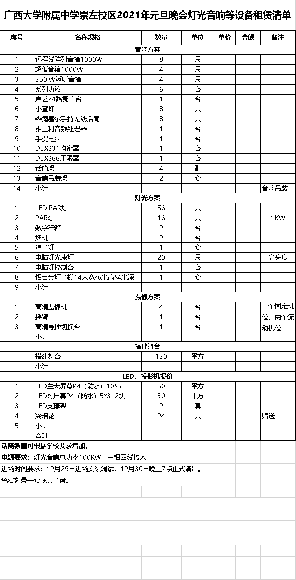 米兰电竞,洞察赛局趋势,定义电竞美学附属中学(南宁校区)2021年元旦晚会灯光音响等设备租赁清单 |