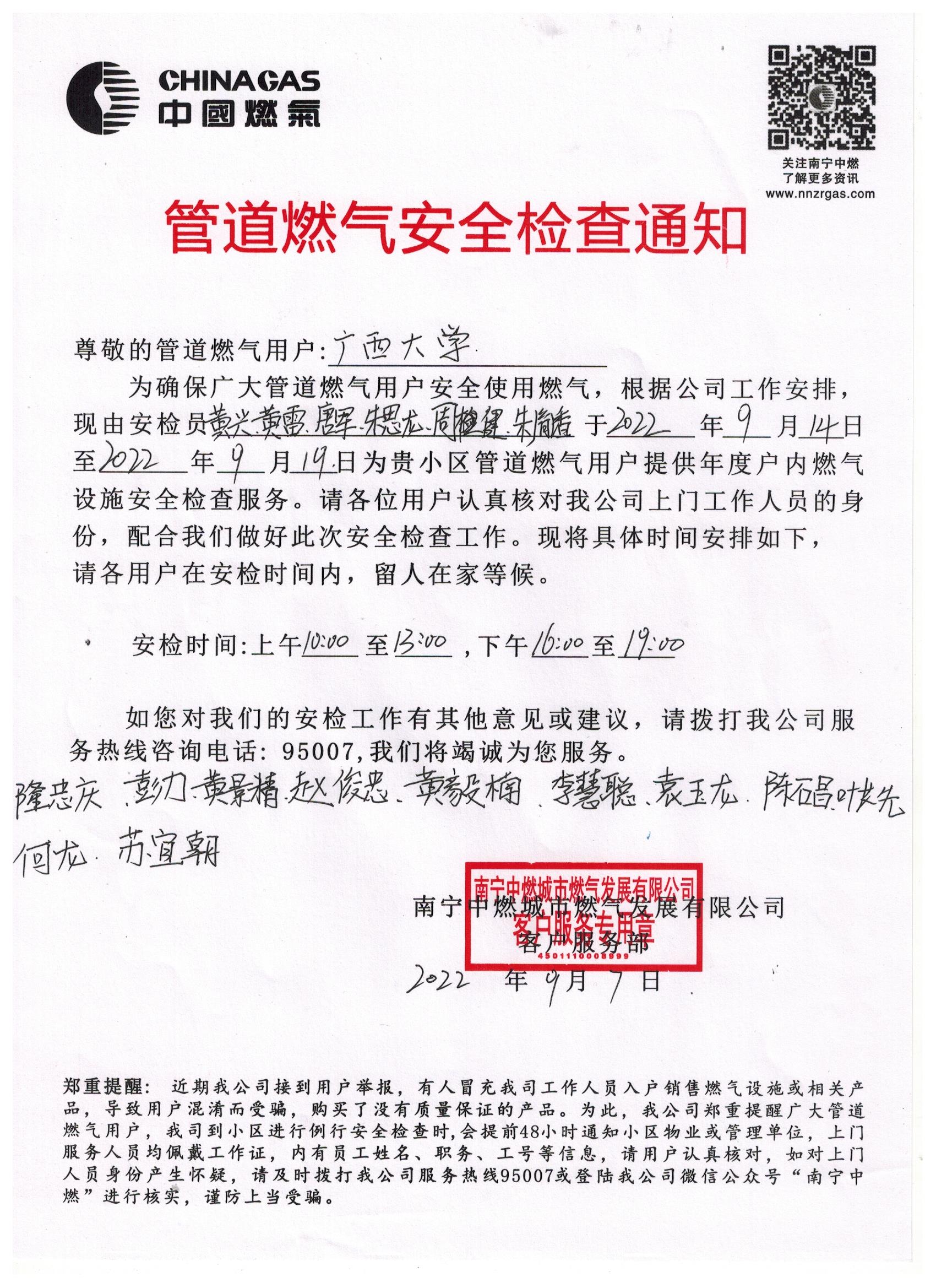 管道燃气安全检查通知