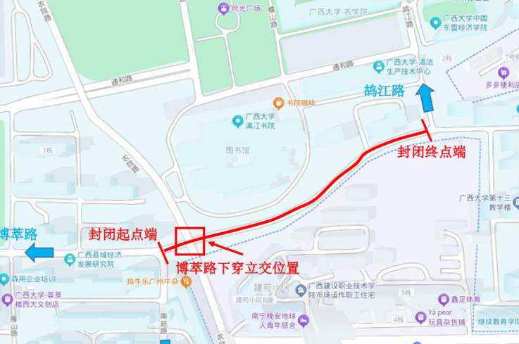 因博萃路下穿立交桥评估检测需要,计划于2025年3月22日上午9:00至下午14:00对博萃路(博萃立交路段)进行临时封闭。具体封闭路段为博萃路的与南苑路交叉口往博萃路延长线方向100米范围(详见附件),届时将禁止车辆及行人通行。禁止通行期间将对该路段的出行造成一定影响,请大家绕道通行。如有不便,敬请谅解。感谢大家的理解与支持!